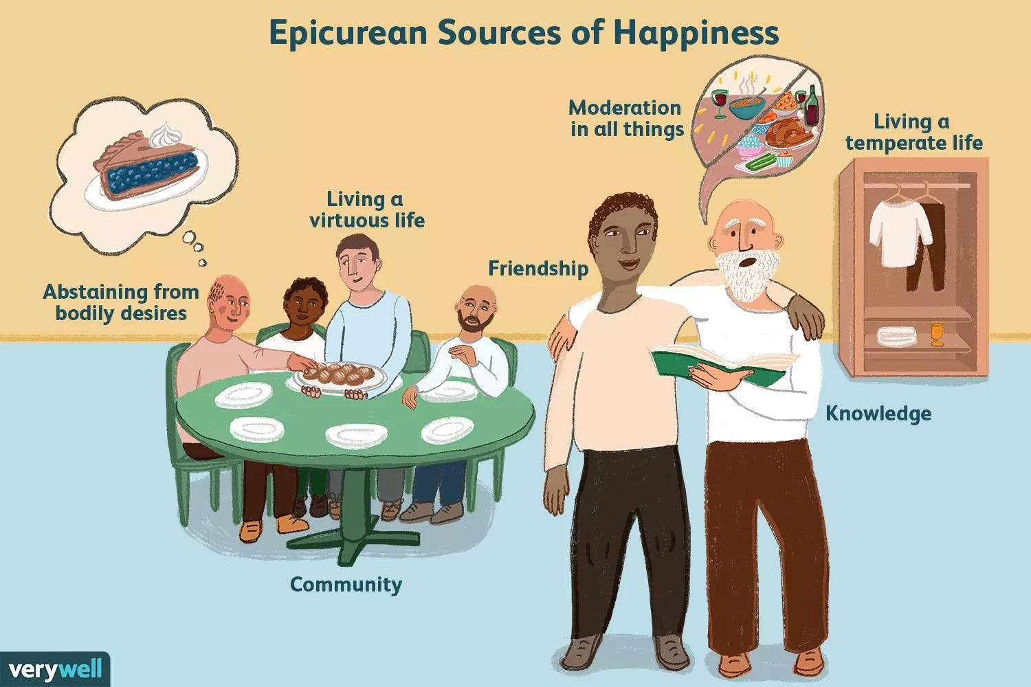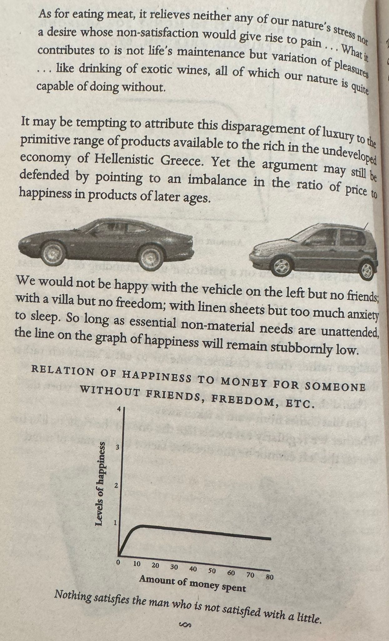 Apoi, trebuie să învățăm să ne bucurăm de moderație și să ne bucurăm de experiențe care ne împlinesc, mai degrabă decât de lucruri materiale. O viață simplă, într-o companie plăcută este mai plină de fericire autentică în raport cu o viață trăită în lux, dar goală în conțint. Mai multe sfaturi în continuarea lecturii aflate parțial după paywall, din cartea lui Alain de Botton, Consolarea Filosofiei, pe care le poți savura lângă un pahar de whiskey apă. Dacă apreciezi activitatea Espresso Filosofic și textele săptămânale, alege să ne susții prin trecerea la un abonament plătit, echivalentul lunar al unei cafele în centrul Bucureștiului.