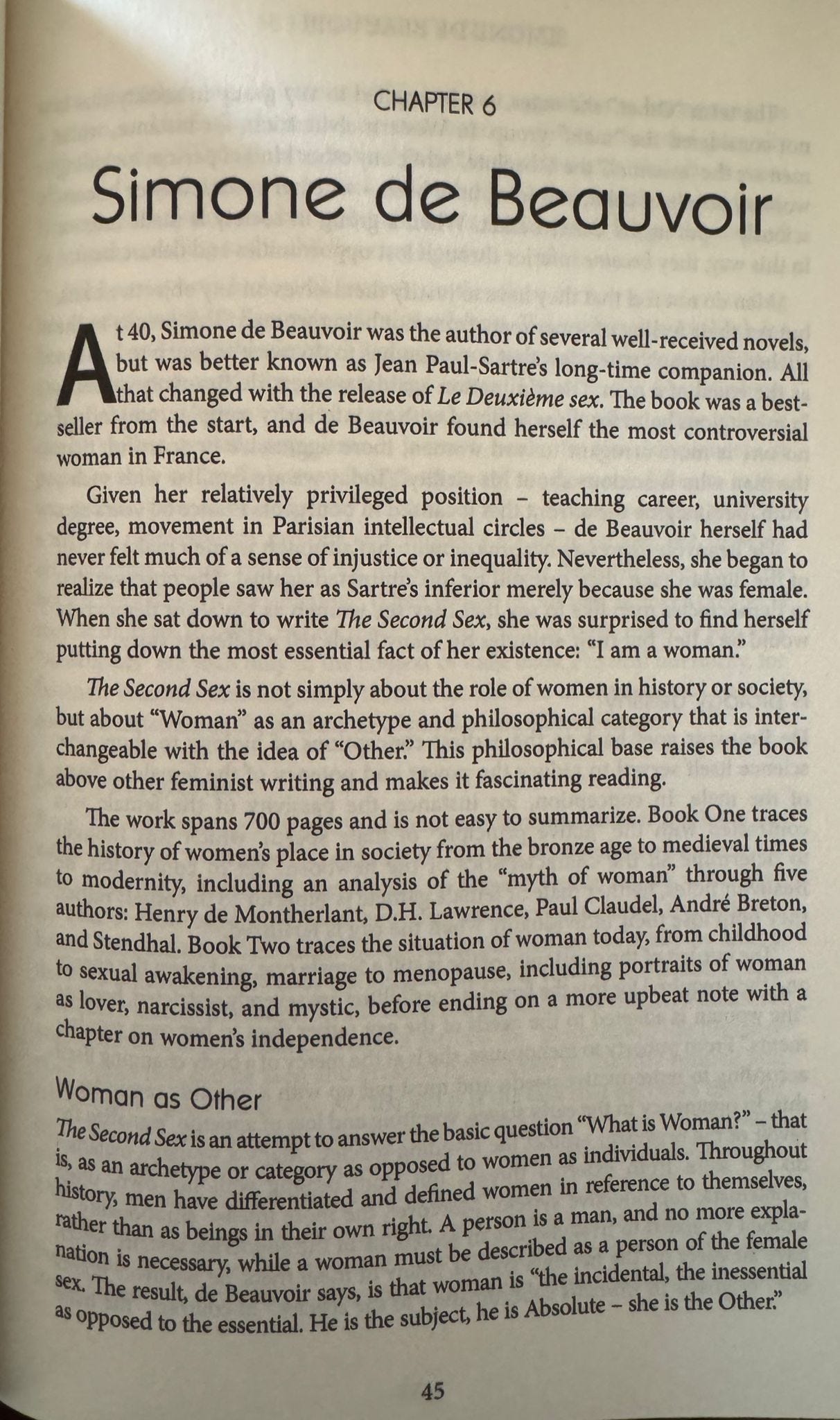La data de 9 ianuarie s-au împlinit 118 ani de la dispariția uneia dintre cele mai emblematice figuri feminine ale filosofiei, Simone de Beauvoir. Cunoscută adesea ca partenera de viață a lui Jean-Paul Sartre, Beauvoir a reușit să își afirme individualitatea filosofică odată cu Al doilea sex, cartea sa emblematică, ieșind astfel, în percepția publică, din sfera ”celuilalt” - reprezentatul/a acelui grup care nu reprezintă majoritatea (în cazul de față filosoful, eminamente un bărbat).