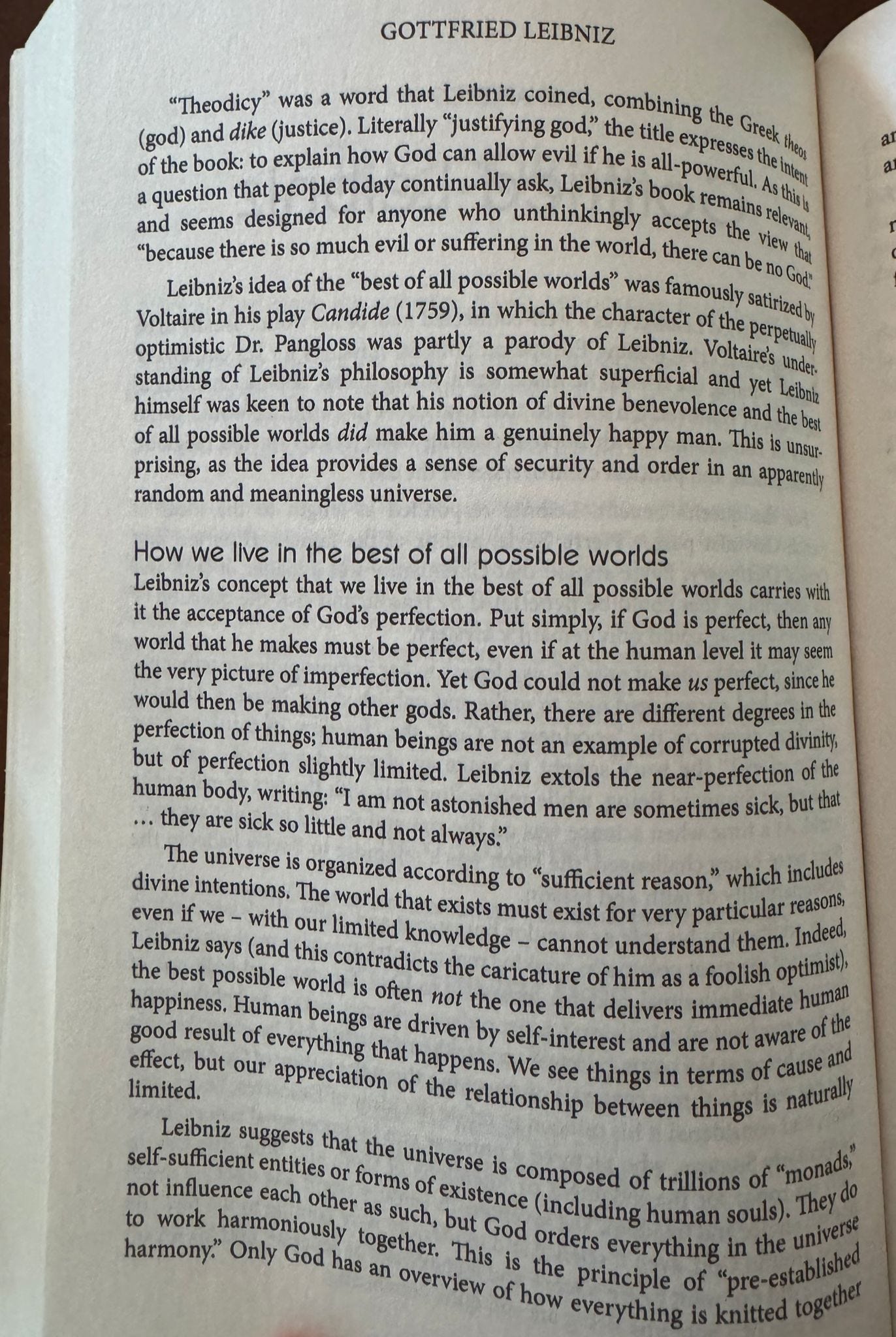 Leibniz a încercat să elaboreze argumente care să susțină existența lui Dumnezeu în fața criticilor care începeau să se dezvolte în epocă, pe măsură ce știința căpăta un rol mai important. Ce este interesant este că aceste argumente nu sunt pur bisericești, ci implică un exercițiu de gândire aprofundat, în urma căruia, chiar ca ateu sau agnostic, poți aprecia latura filosofică a expunerii lui Leibniz.